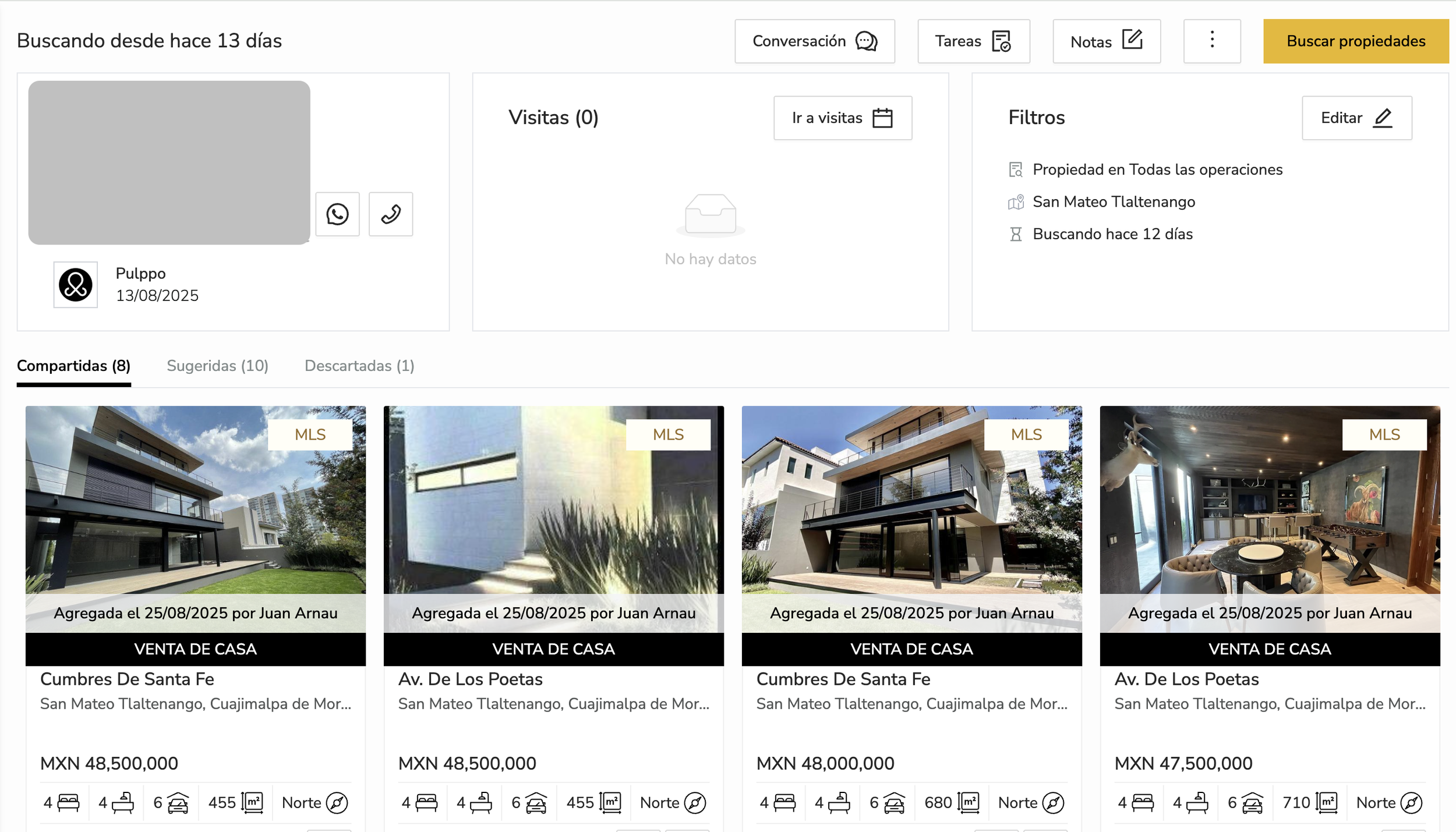 En lugar de llenarte de mensajes y links de distintos portales, agrupa todo en un solo lugar, con comentarios reales y agenda las visitas con lógica. Un buen agente filtra por ti, para que no pierdas tiempo en casas que no cumplen lo que necesitas.